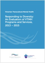Victorian Transcultural Mental Health. (2016). Responding to diversity: An evaluation of VTMH programs and services, 2013–2015. Fitzroy, VIC: Victorian Transcultural Mental Health.