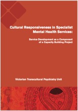 Victorian Transcultural Psychiatry Unit. (2011). Cultural responsiveness in specialist mental health services: Service development as a component of a capacity building project. Fitzroy VIC: Victorian Transcultural Psychiatry Unit.