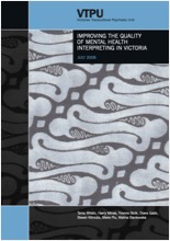 Miletic, T., Minas, H., Stolk, Y., Gabb, D., Klimidis, S., Piu, M. & Stankovska, M. (2006). Improving the quality of mental health interpreting in Victoria. Fitzroy VIC: Victorian Transcultural Psychiatry Unit.